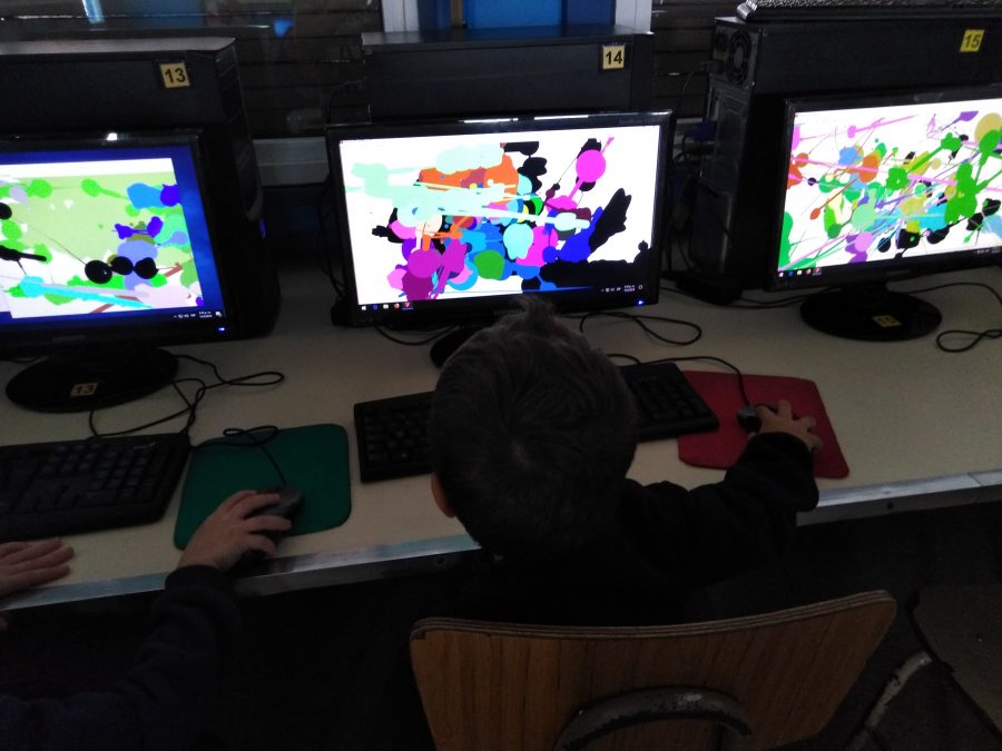 Vimos un corto animado, hablamos de sus obras y luego cada alumno realizó su propia obra de arte.