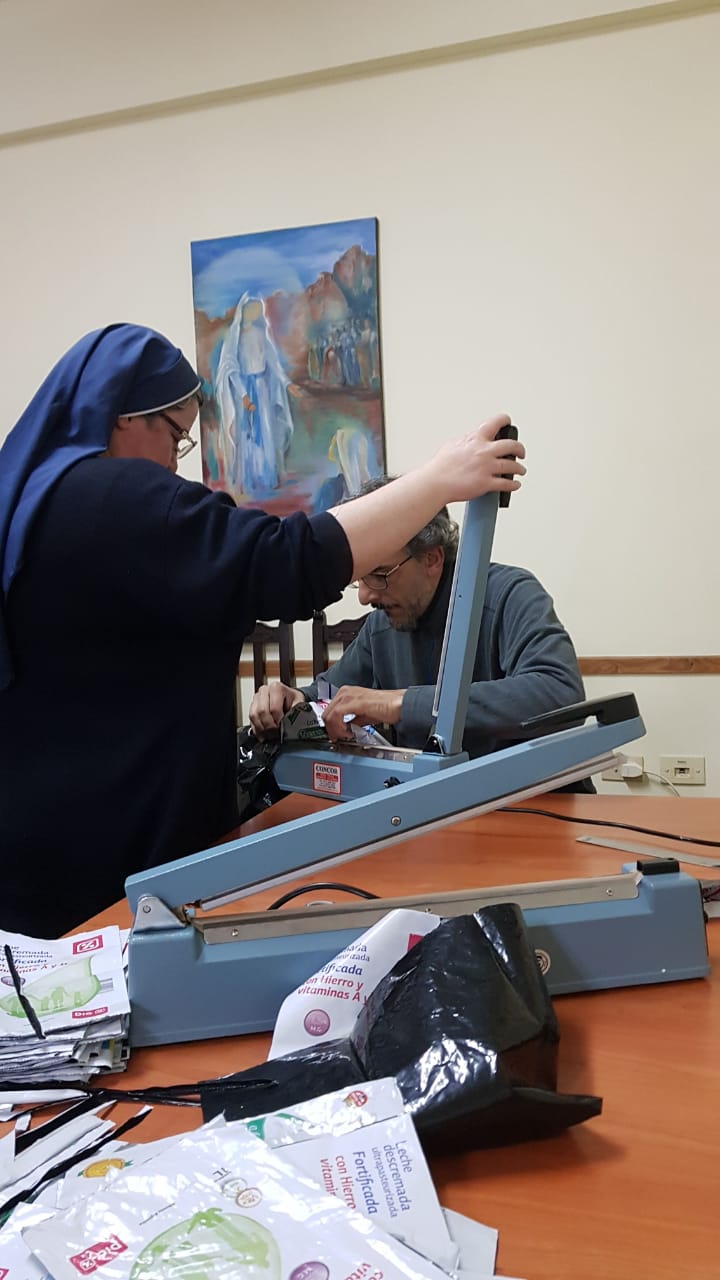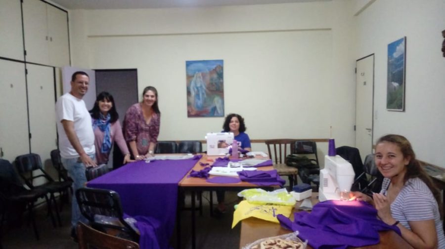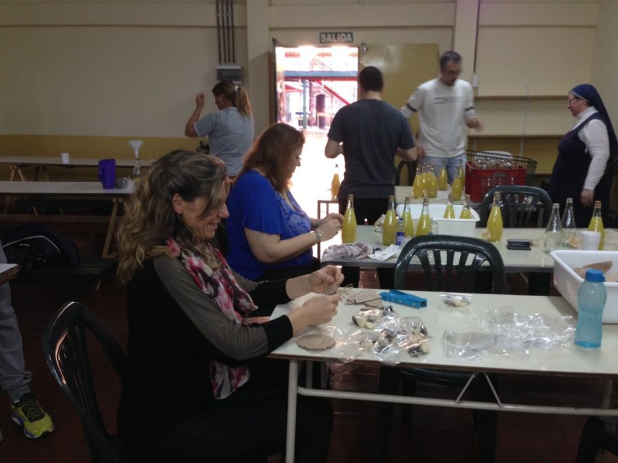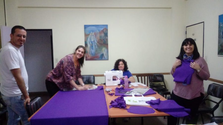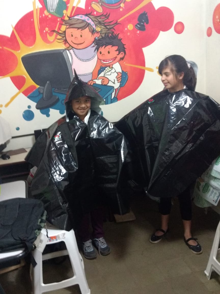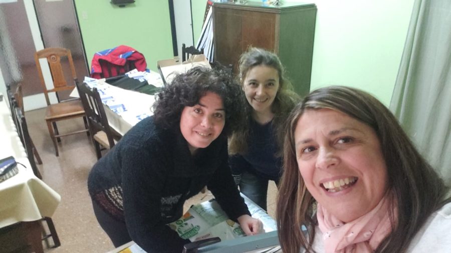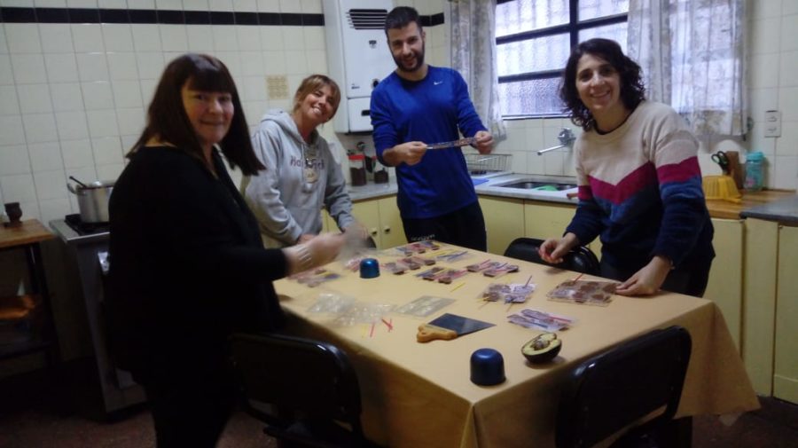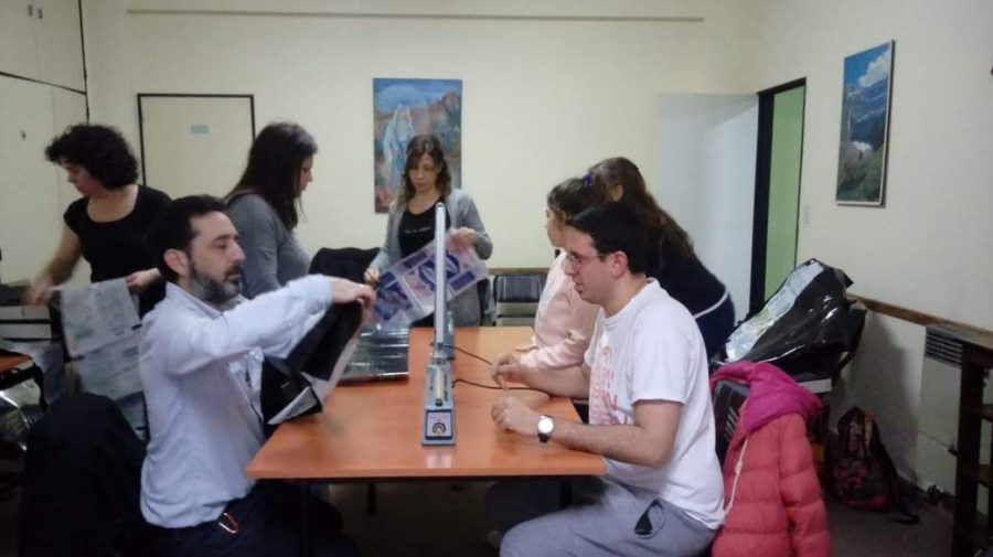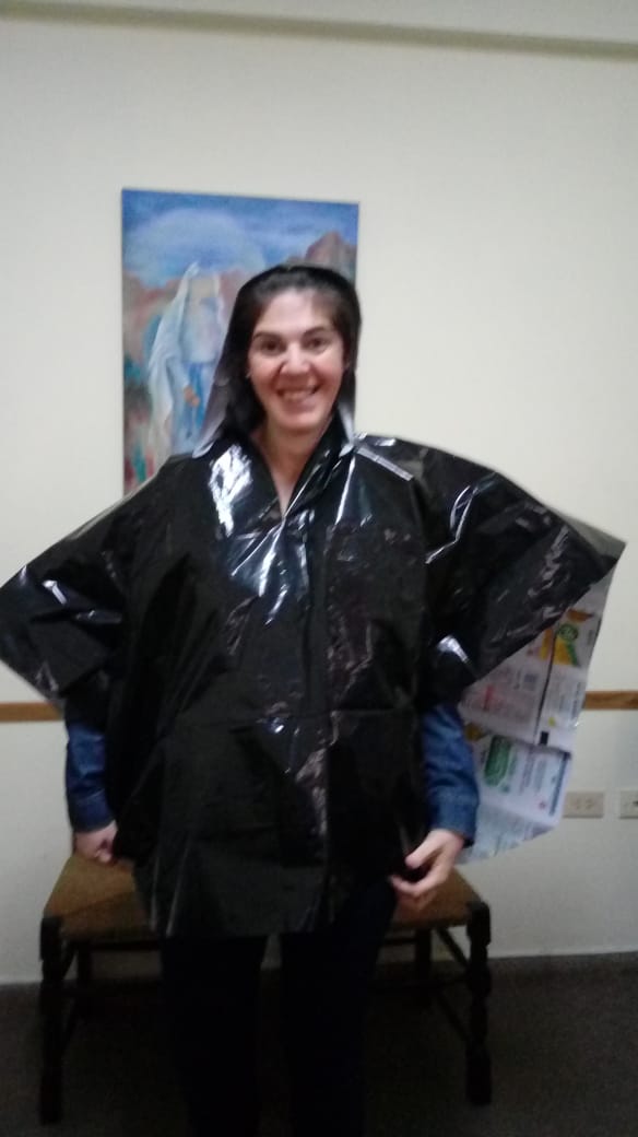 – Armado de capas de lluvia (sachets) junto a P.L. para alumnado de la escuela de Mendoza.