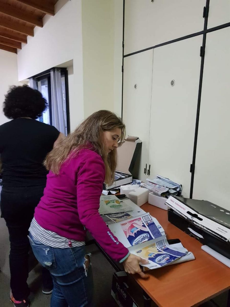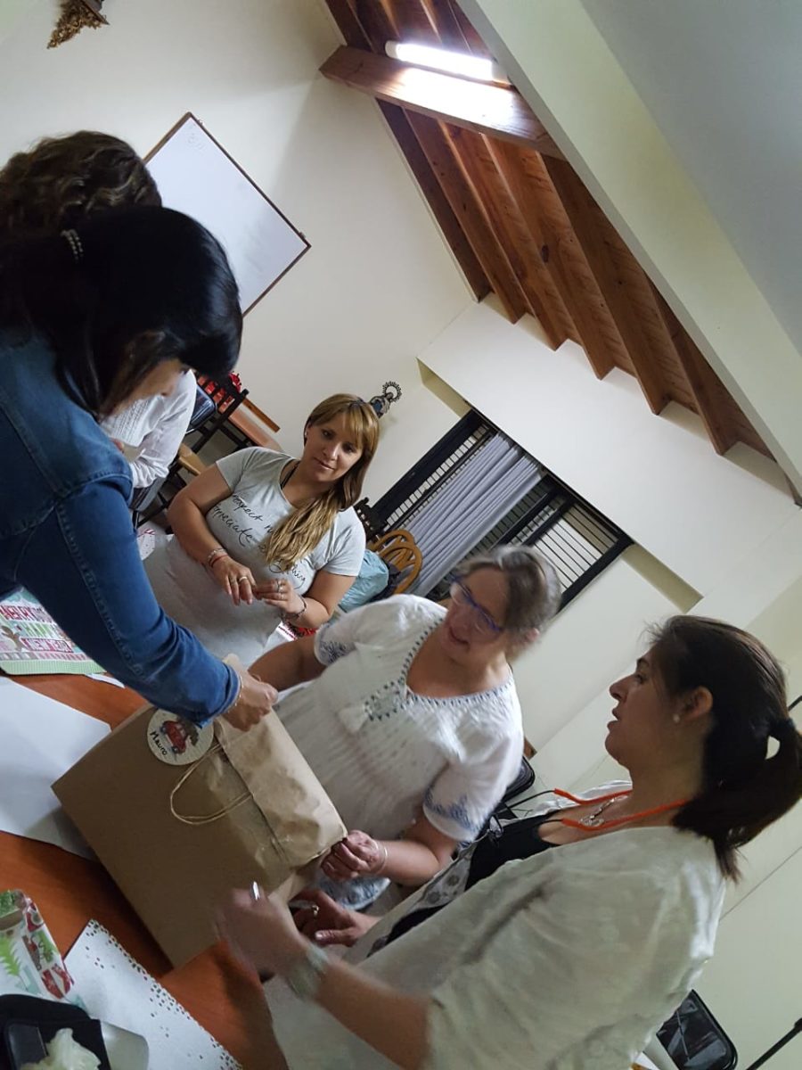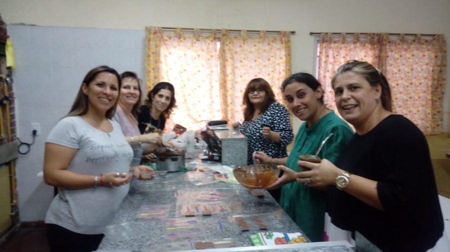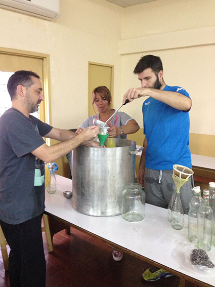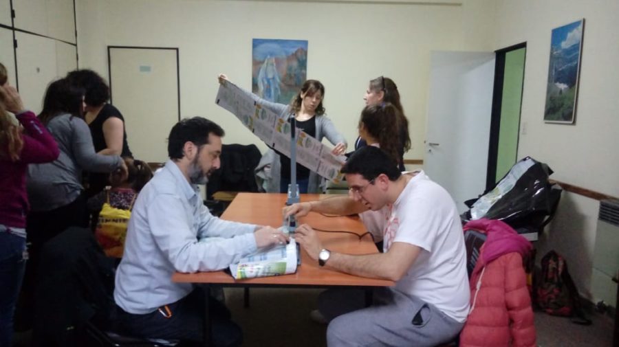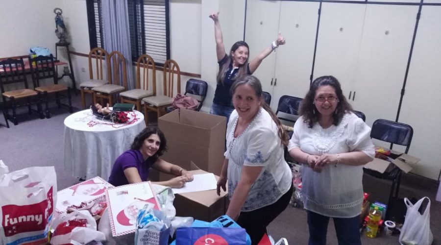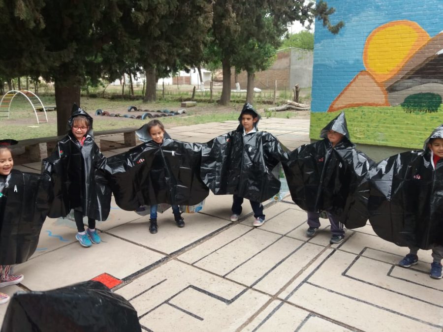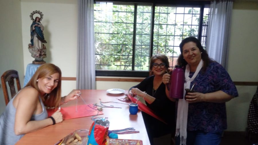– Armado de capas de lluvia (sachets) junto a P.L. para alumnado de la escuela de Mendoza.