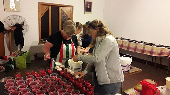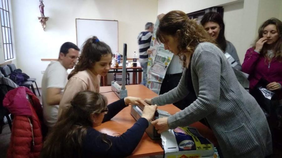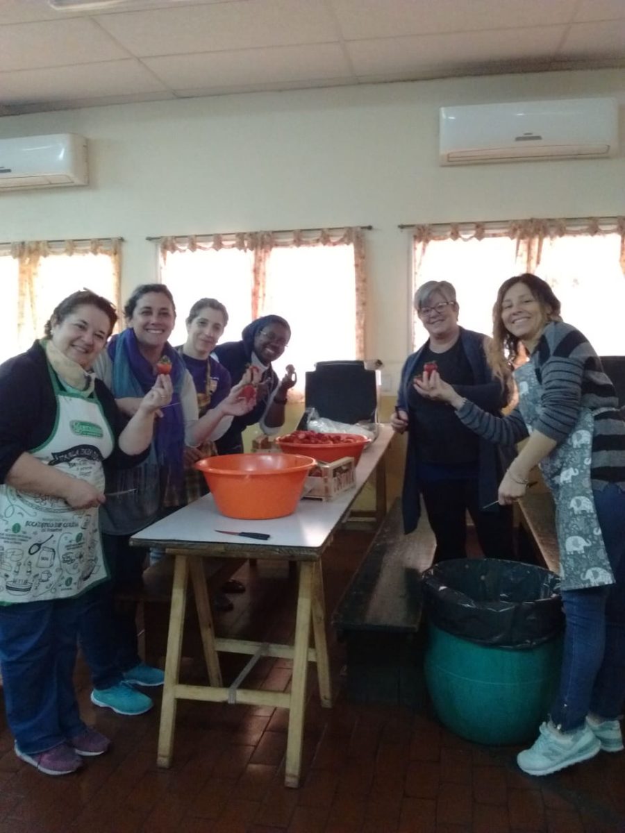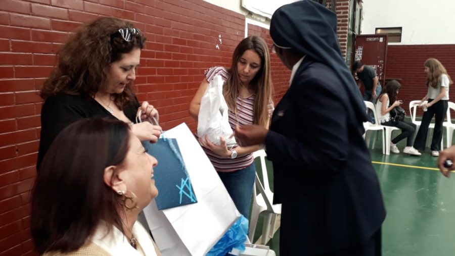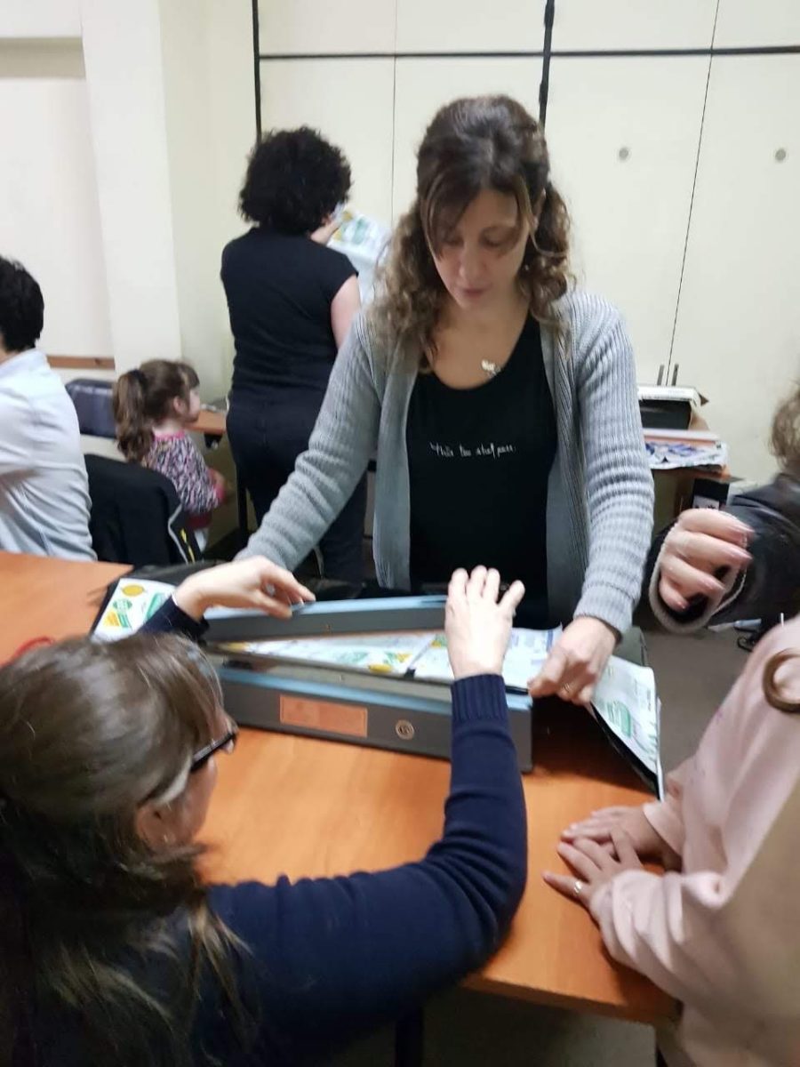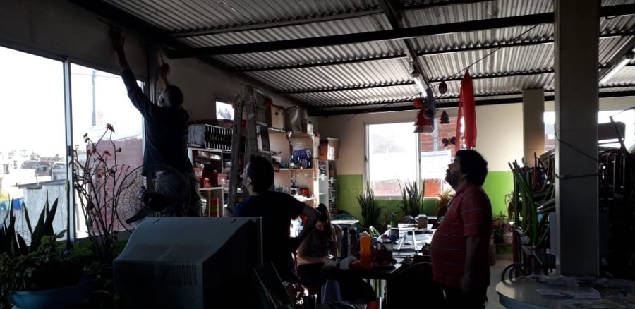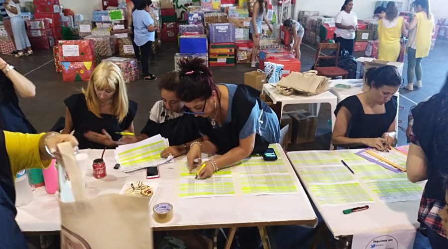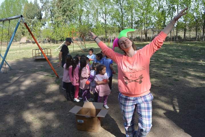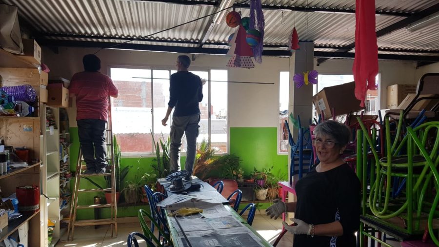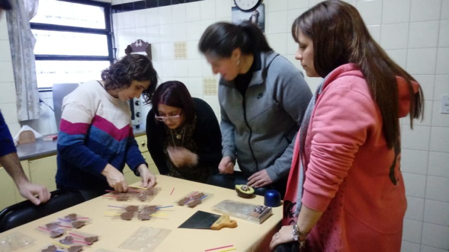 – Armado de capas de lluvia (sachets) junto a P.L. para alumnado de la escuela de Mendoza.