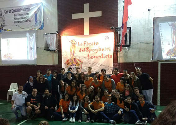 En el 2009 se organizó la primera Fiesta del Spaghetti Lourdista, evento llevado a cabo íntegramente por Jóvenes Líderes con el objetivo de convocar a las familias para compartir un momento de encuentro y diversión, además de reunir fondos para servicios sociales. Para dicho evento surgió la necesidad de identificarnos como servidores durante la cena y utilizamos una banda de tela verde con una franja naranja, ese sería el comienzo de los colores que hoy en día, sumado el violeta y blanco, nos siguen representando.