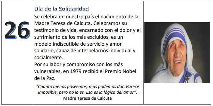 Desde hace ya varios años, el Equipo de Educación en la Fe participa en esta propuesta con todos los cursos de los 3 niveles de nuestra escuela, los docentes, los padres líderes, la comunidad religiosa armando la CAJA NAVIDEÑA que incluye los productos y los regalos para celebrar en familia.
